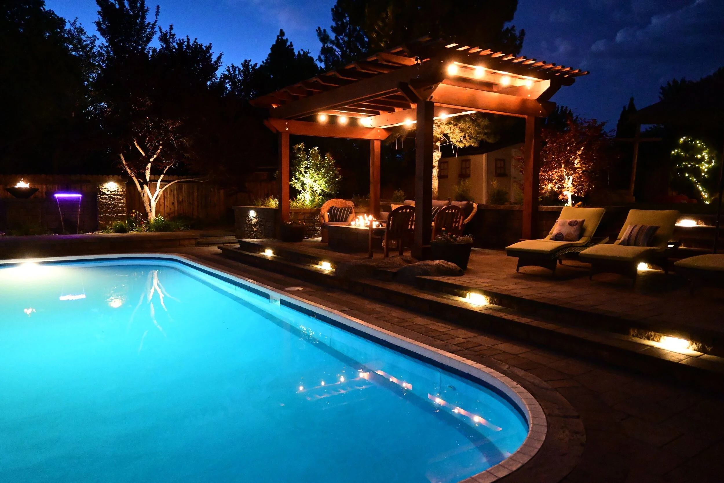 A talented landscaper knows that uniting fire and water together is an unbeatable combination. A nearby pond or gazing pool can reflect the flickering flames to add more drama to your nighttime landscape while a strategically placed fountain can introduce the soothing sounds of spilling water to enhance the whole experience. When fire and water come together, they can create an outdoor space that hits all the highs.
